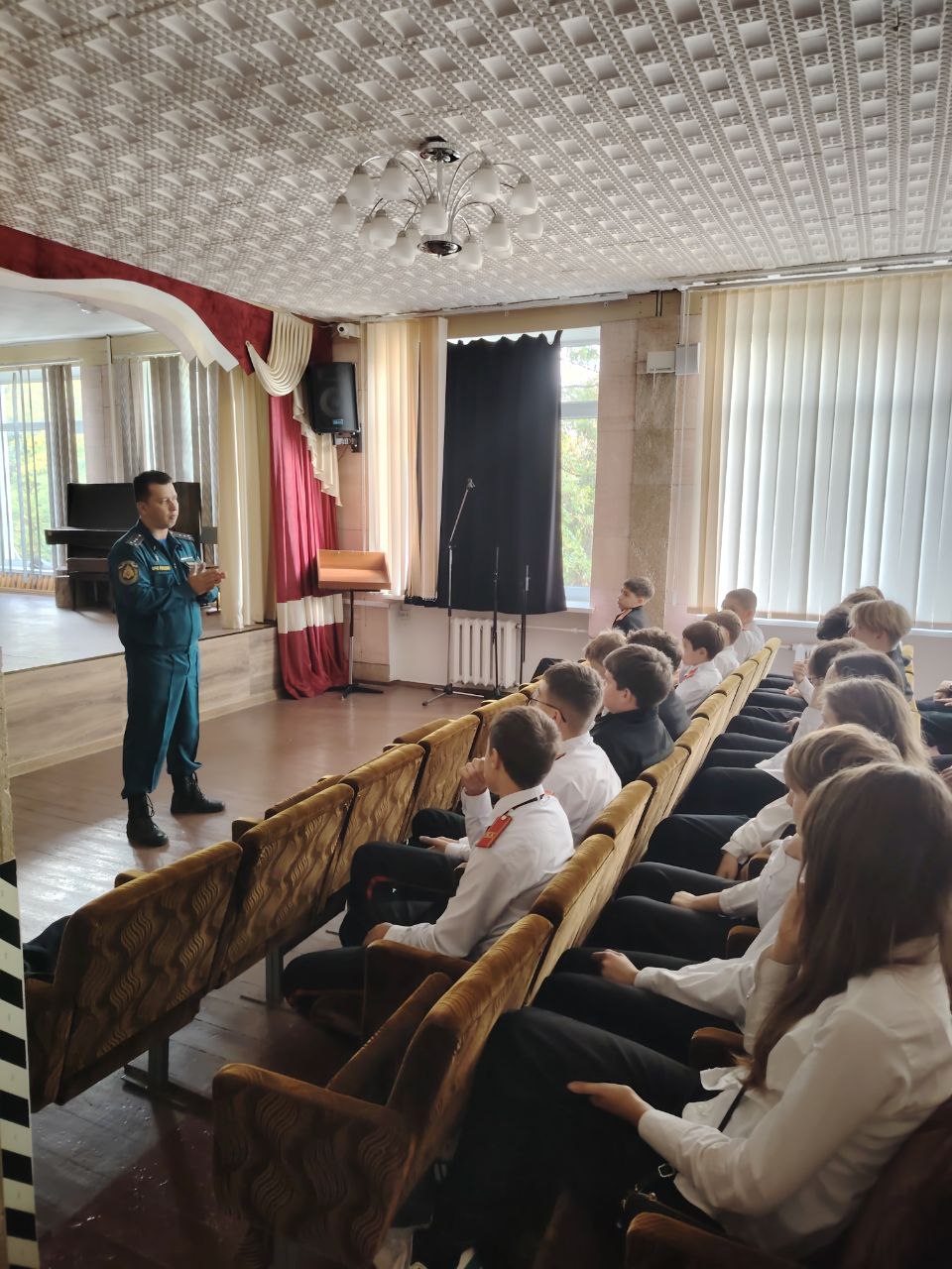 | Заместитель начальника 17-й ПСЧ(г.Керчь) ЗПСО ФПС ГПС ГУ МЧС России по Республике Крым,, капитан внутренней службы Чумаченко К. С. провёл открытый урок по гражданской обороне для кадет 7-А класса, приуроченный Дню гражданской обороны. Урок стали важным этапом повышения осведомлённости ребят о правилах поведения в чрезвычайных ситуациях. Благодаря таким мероприятиям наши ученики получают ценные знания и практические навыки, которые помогут им уверенно действовать в экстренных обстоятельствах.