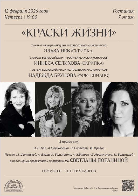 ● Любой выход на сцену для артиста - это волнение и ответственность. И оно умножается многократно перед выступлением в столице для искушенной публики с большой и сложной программой. Но все переживания длятся до первой ноты, а затем захватывает музыка, атмосфера зала, творчество и начинается магия! Магия прекрасных произведений выдающихся авторов и магия замечательных артистов-виртуозов. Гении и таланты Поэзии сплетаются воедино с творениями Великой Музыки: М.Цветаева и И. С. Бах, А. Блок и М. Мошковский. Вдохновенный голос замечательной актрисы, засл. артистки РФ Светланы Потаниной творил вместе с керченскими исполнителями на сцене ● Дома актёра, вдохновлял и наполнял зал прекрасной поэзией и красками жизни. Керчь может гордиться профессиональными достижениями своих музыкантов, вдохновляющими слушателей своими блестящими выступлениями.